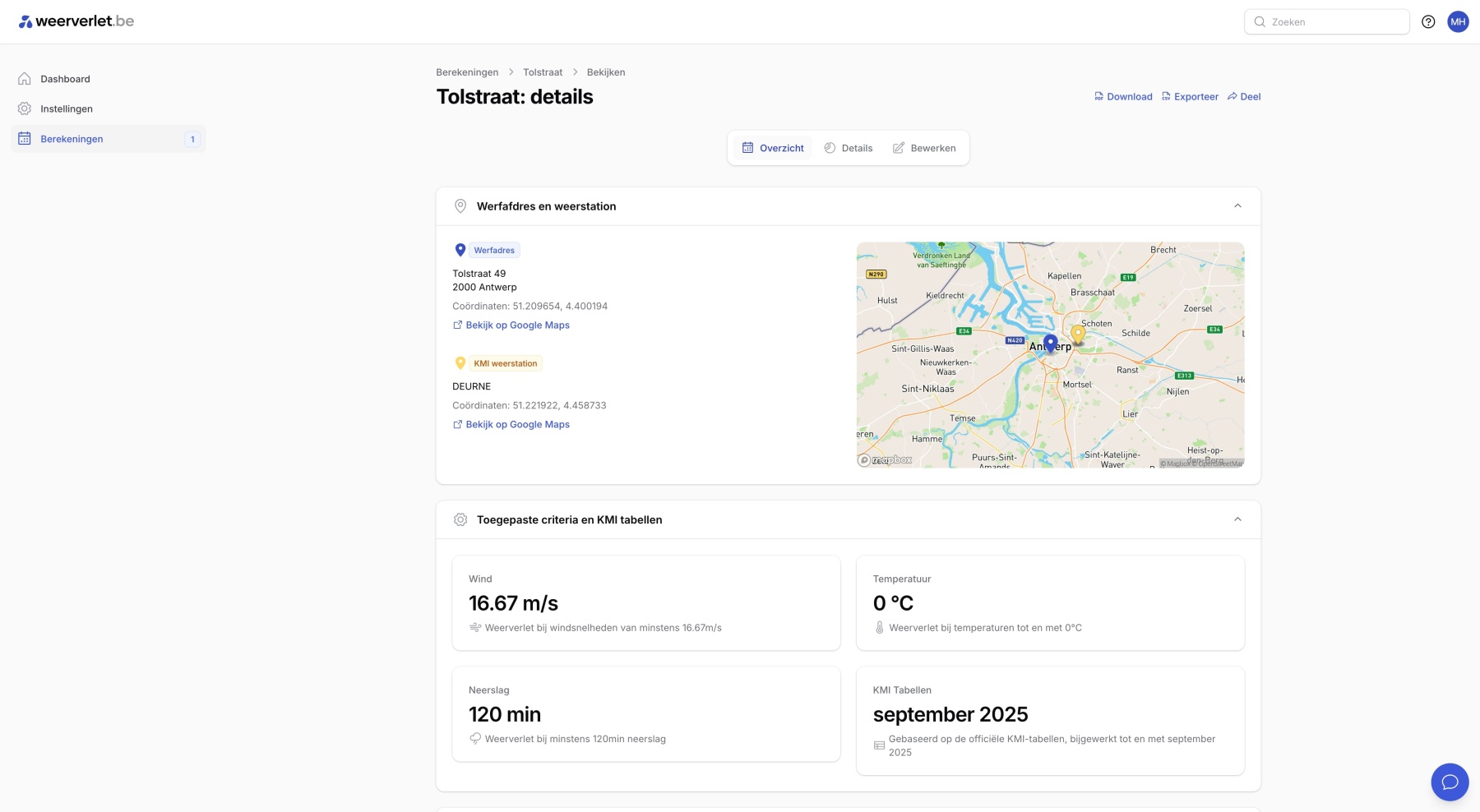Met onze tool bereken je eenvoudig weerverlet, zonder tijdverlies en kans op manuele fouten.